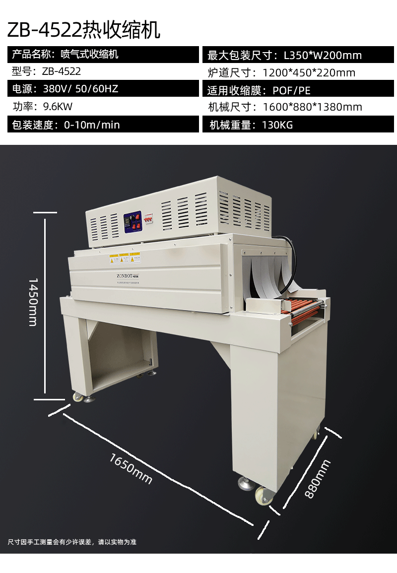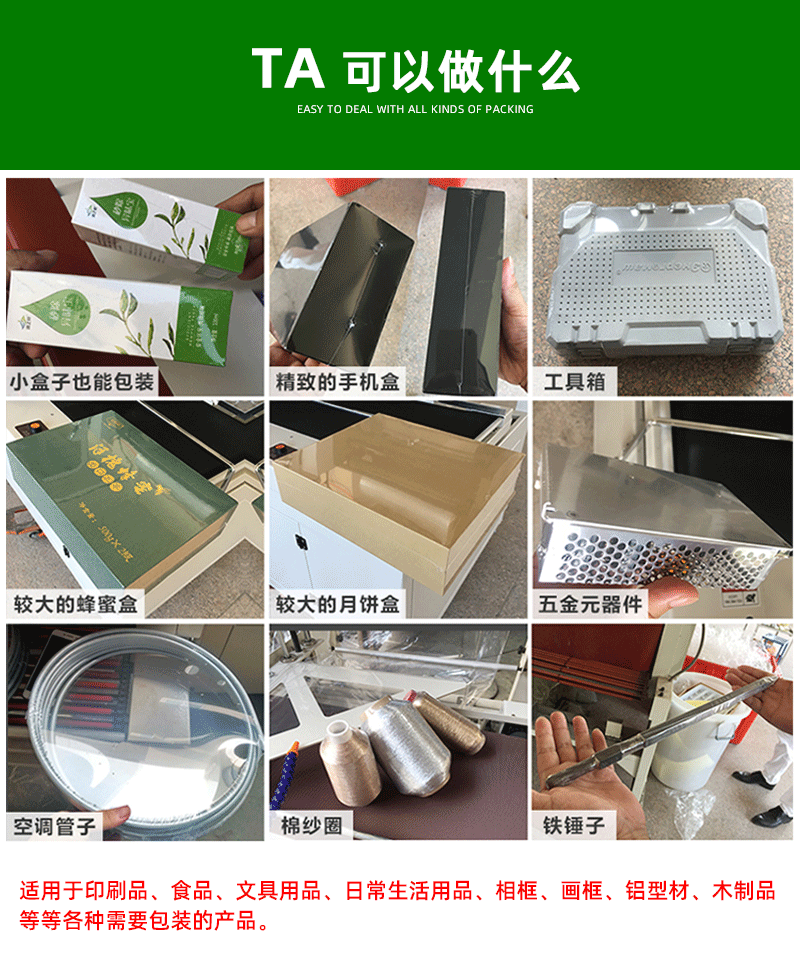 - 適用范圍廣:可適用于 POF、PVC、PE 等各種工業(yè)標準的收縮膜,廣泛應用于食品、化妝品、制藥、印刷、電子、五金、陶瓷、飲料等多個行業(yè),適用于不同尺寸和形狀的產品包裝2。