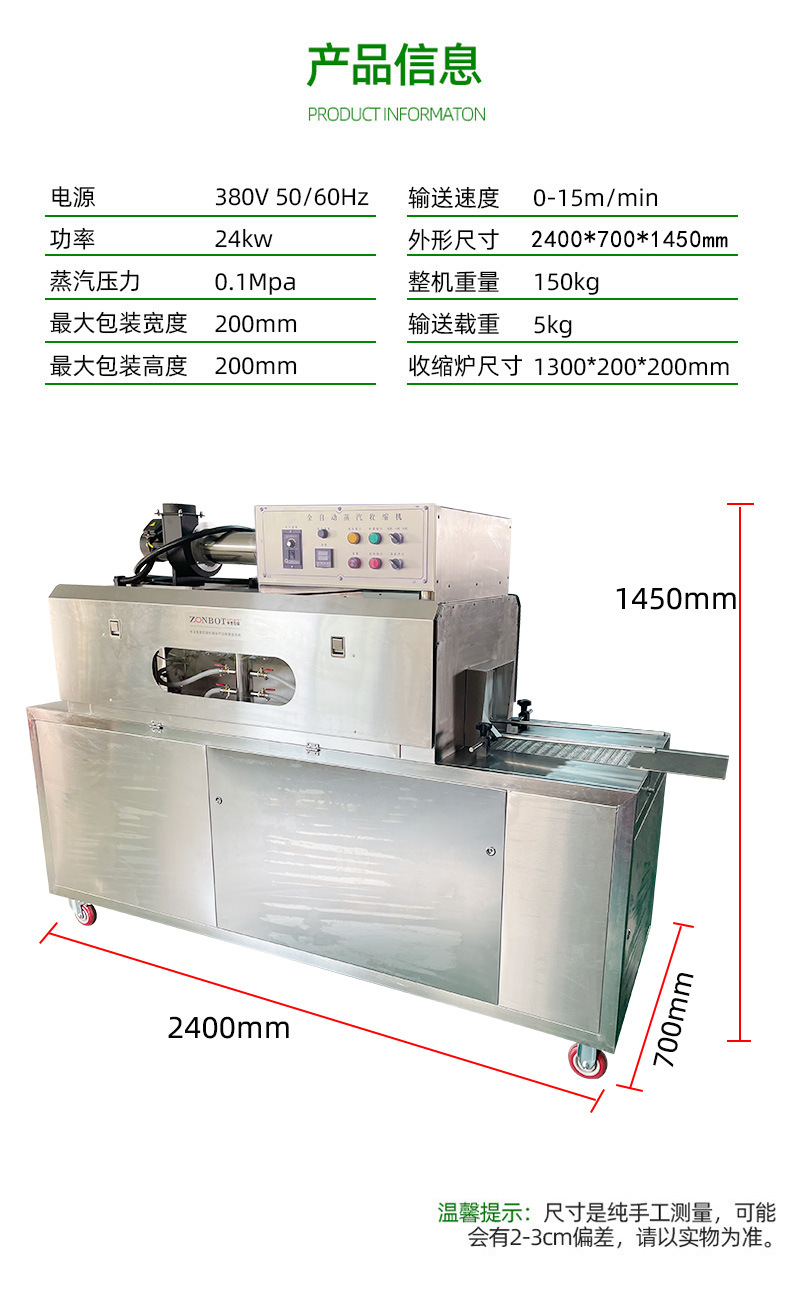 它的核心作用是利用蒸汽的熱能,使包裝材料發生收縮,從而達到緊致包裹產品的效果。