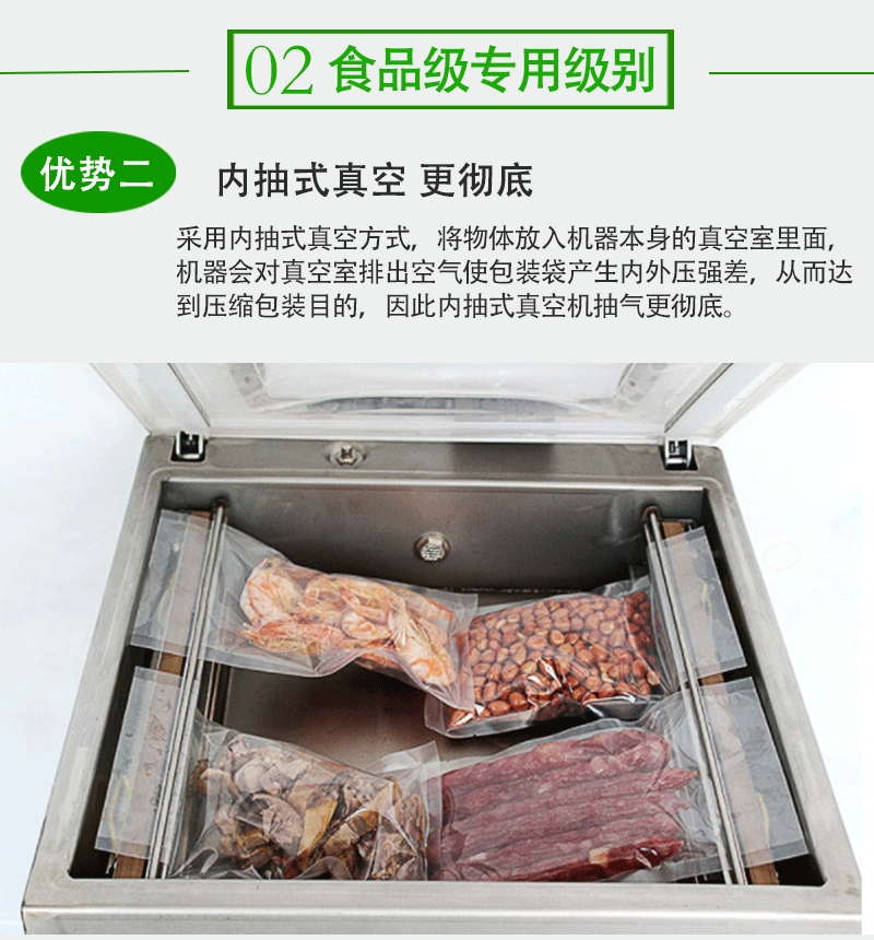 - 無論是干燥的顆粒狀食品,如大米、豆類,還是含有較多水分的食品,如泡菜、鹵制品,都能進行有效的真空包裝。