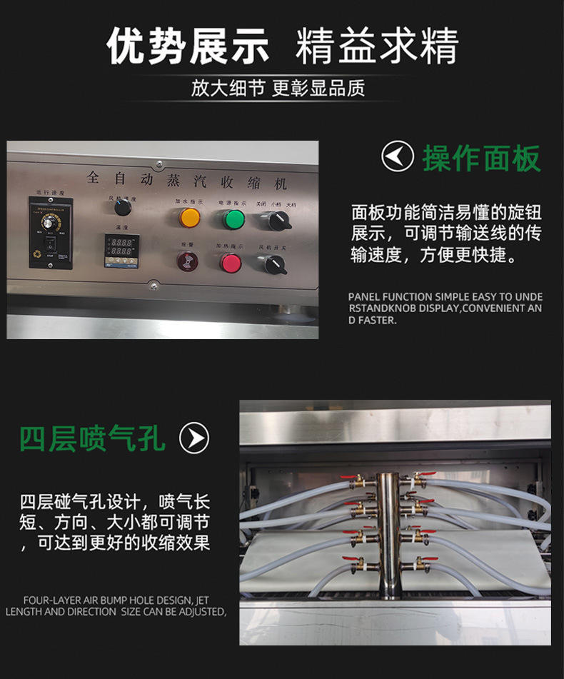 - 收縮室:是蒸汽與產品及包裝膜進行熱交換的場所。收縮室的設計和結構會影響蒸汽的分布均勻性和收縮效果,良好的收縮室設計能夠保證蒸汽充分、均勻地作用于包裝膜,使收縮后的包裝更加美觀、緊致。