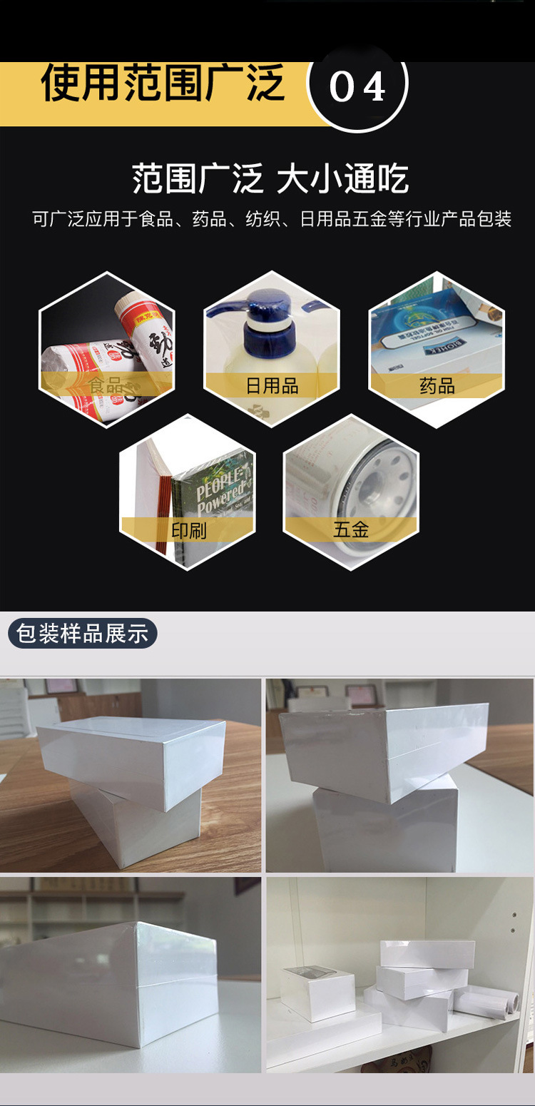- 包裝效果好:封切整齊,熱收縮均勻,包裝外觀美觀大方。