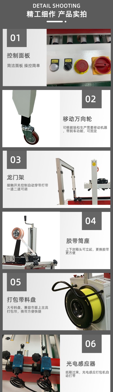 - 打包機構:主要由打包帶供給裝置、收緊裝置、焊接或卡扣裝置等構成。打包帶供給裝置負責提供打包所需的打包帶,收緊裝置可將打包帶收緊到合適的緊度,焊接或卡扣裝置則用于完成打包帶兩端的固定連接。