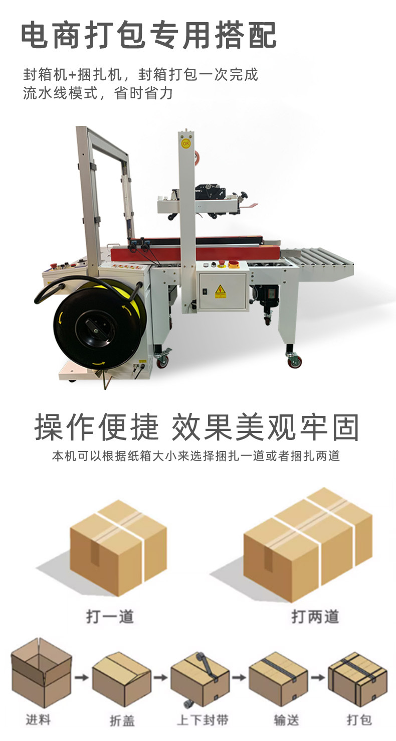 - 高效性:能夠快速、連續地完成封箱和打包操作,極大地提高了包裝工作的效率。相較于人工操作,它可以在短時間內處理大量的物品包裝任務,有效節省了包裝時間。