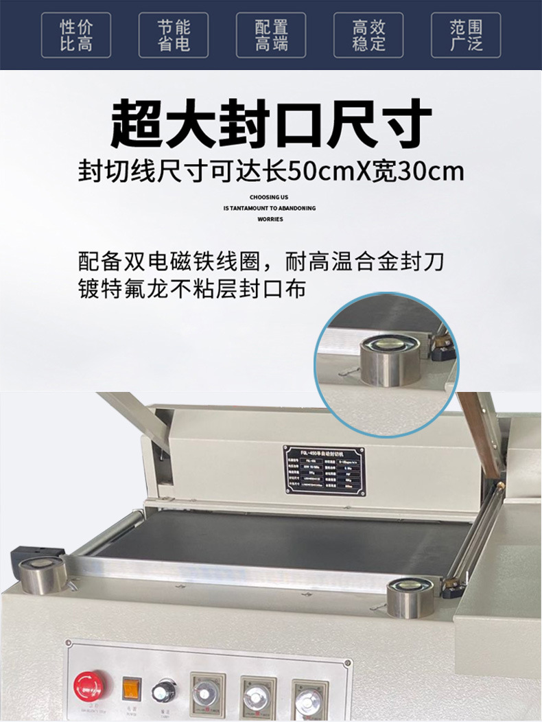 - 壓力裝置:包括壓合模具、氣缸等部件。在加熱封口時,壓力裝置對熔融的包裝膜施加適當的壓力,使封口處緊密貼合,形成牢固的封口。氣缸可用于提供穩定的壓力源,壓合模具則決定了封口的形狀和尺寸。