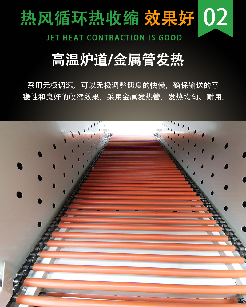 - 輸送帶:負責將待包裝物品平穩地輸送通過各個工作區域,如套膜區、加熱區等。輸送帶的速度通常是可調節的,以便適應不同的包裝速度要求。