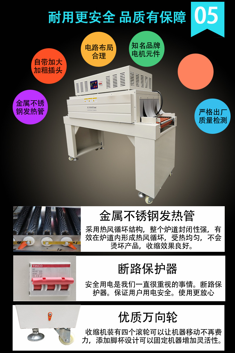 - 加熱系統:考察熱收縮包裝機的加熱系統,包括加熱元件的類型、溫度控制的精度等。優質的加熱系統能夠提供穩定的加熱溫度,確保熱收縮薄膜的收縮效果良好,所以要選擇加熱元件性能好、溫度控制精度高的設備。