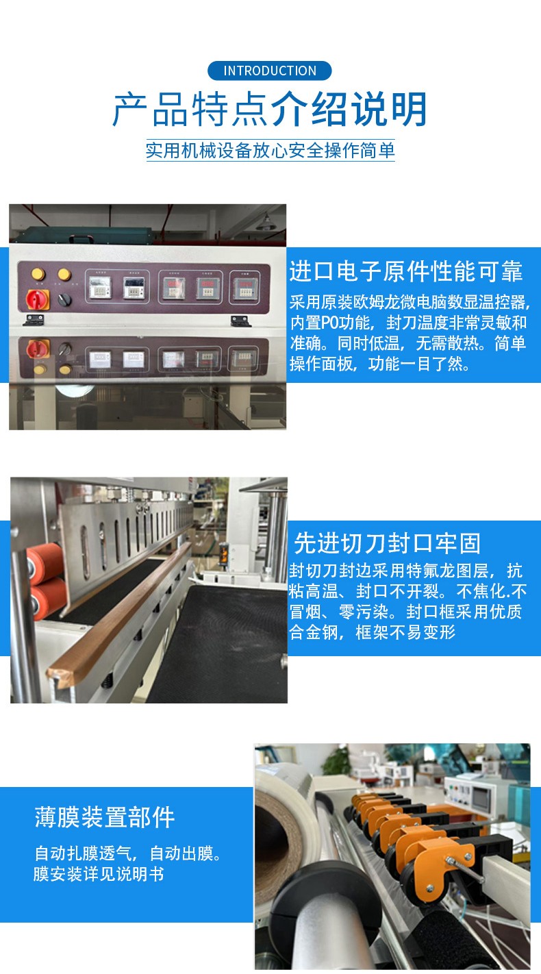 - 厚度:薄膜的厚度會影響邊封的溫度、壓力和時間等參數。較厚的薄膜可能需要更高的溫度和更大的壓力來進行封口,而且在熱收縮過程中也可能需要更長的時間或者更高的溫度。因此,在選擇設備時要考慮其是否能夠滿足不同厚度薄膜的包裝要求。
