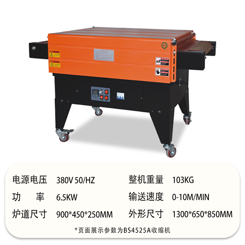 - 包括輸送帶和驅動電機等部分。輸送帶用于將產品平穩地輸送通過熱空氣噴射區域,其速度可以調節。這樣可以根據不同的包裝速度要求和產品尺寸來控制產品在機器中的停留時間。例如,對于較小的產品,如糖果,可以加快輸送帶速度,提高包裝效率;而對于較大的產品,如家電產品的配件,輸送帶速度可以適當減慢,以保證薄膜有足夠的時間進行收縮。