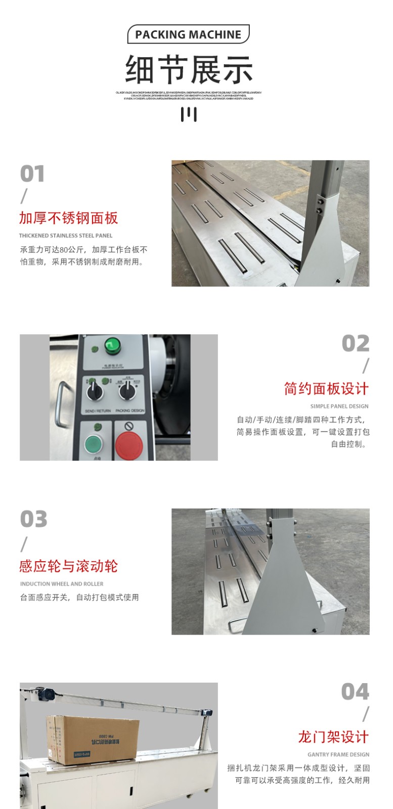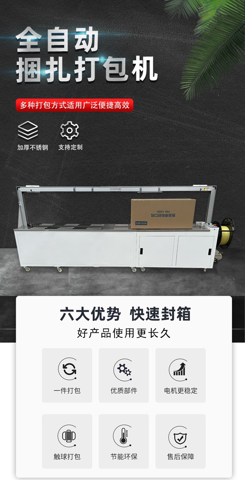 • 能夠精確控制打包帶的使用長(zhǎng)度,避免了人工打包時(shí)可能出現(xiàn)的打包帶浪費(fèi)現(xiàn)象,節(jié)約了包裝材料成本。