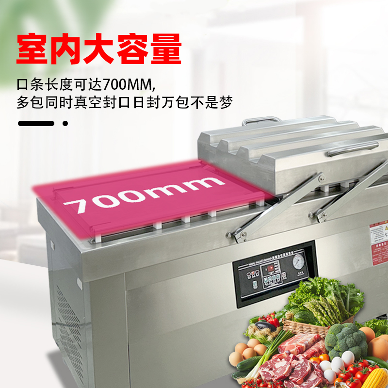 雙室真空包裝機(jī)通過 “雙真空室輪換作業(yè)” 實(shí)現(xiàn)抽真空與裝袋無縫銜接,核心是利用兩個(gè)獨(dú)立真空室的 “時(shí)間差并行操作”,讓設(shè)備在同一周期內(nèi)同時(shí)完成 “抽真空密封” 和 “人工 / 自動(dòng)裝袋”,徹底消除單室機(jī)型 “抽真空時(shí)無法裝袋” 的等待間隙,大幅提升作業(yè)效率。其具體運(yùn)作邏輯和優(yōu)勢(shì)可拆解為以下 3 點(diǎn):