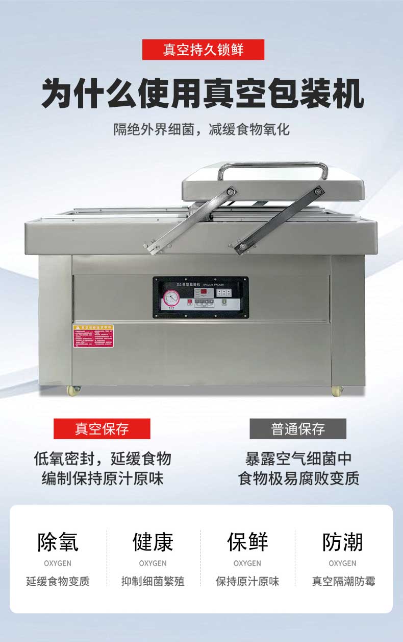 - 真空度高:配置大功率真空泵,可使包裝袋在較短時(shí)間內(nèi)獲得較高的真空度,有效延長(zhǎng)產(chǎn)品的儲(chǔ)存或保鮮期限。