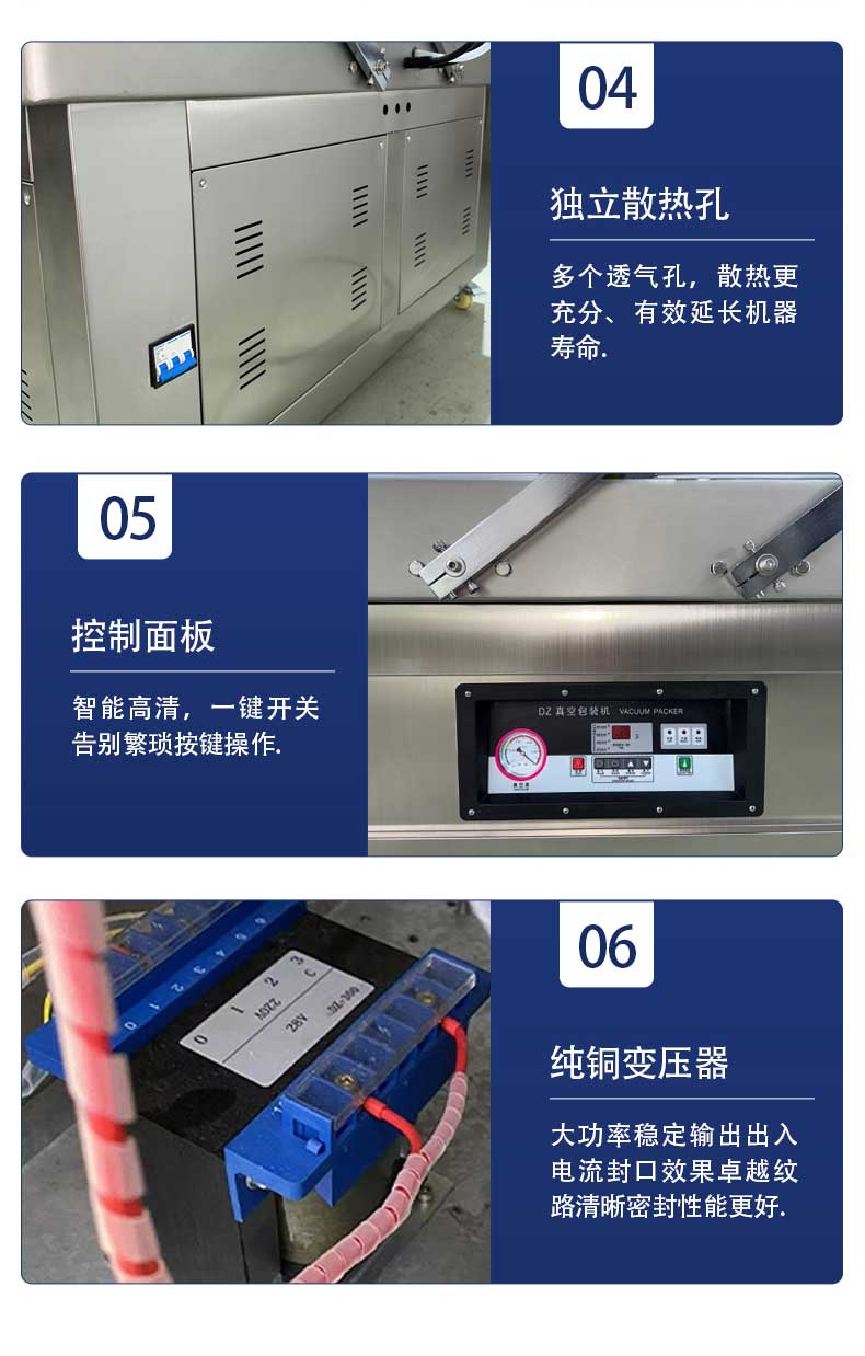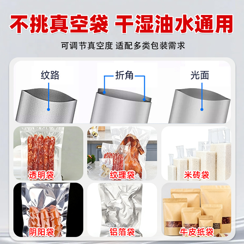 操作上搭載微電腦控制系統(tǒng),一鍵設(shè)定真空時(shí)間、封口時(shí)間,無需專業(yè)培訓(xùn)即可上手,降低人工成本。除了帶液食品,還可兼容堅(jiān)果、干貨、五金電子元件等固體產(chǎn)品包裝,一機(jī)多用適配多品類生產(chǎn)需求。