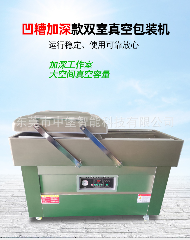 真空包裝機能夠自動抽出包裝袋內的空氣,達到預定真空度后完成封口工序。亦可再充入氮氣或其它混合氣體,然后完成封口工序。真空包裝機常被用于食品行業,因為經過真空包裝以后,食品能夠抗氧化,從而達到長期保存的目的。
