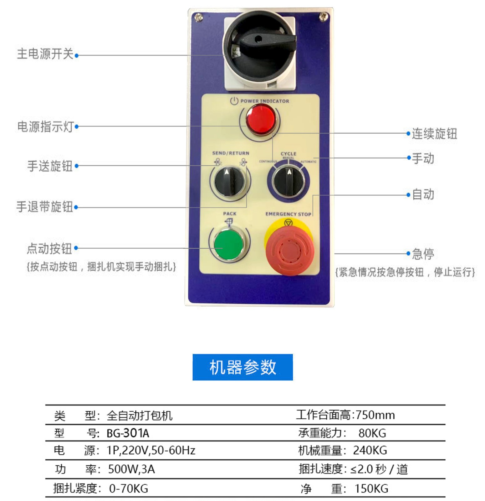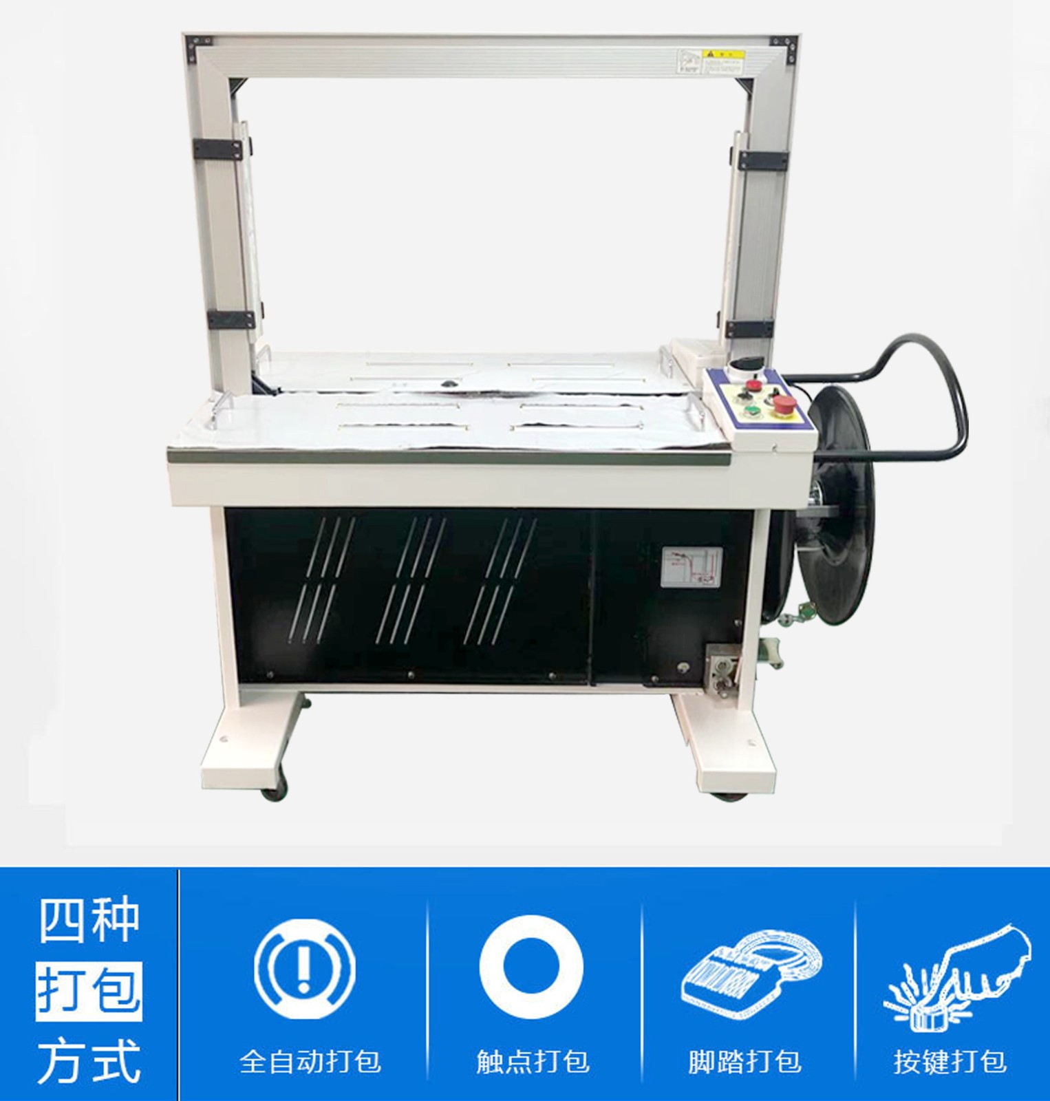 301全自動(dòng)打包機(jī)采用優(yōu)質(zhì)材料制造,耐用性強(qiáng),使用壽命長。同時(shí),其獨(dú)特的外觀設(shè)計(jì),簡潔大方,便于清潔和維護(hù)。