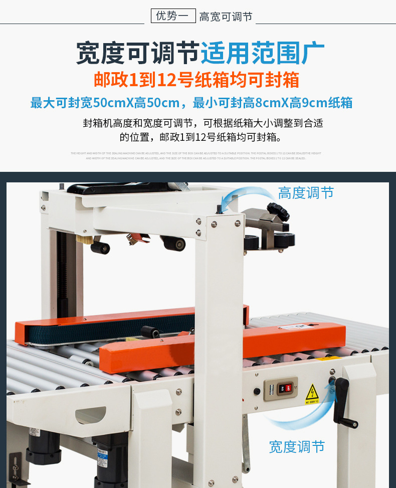 封箱機(jī)主要適用于紙箱的封箱包裝,既可單機(jī)作業(yè),也可與流水線配套使用,它可單箱作業(yè),也可與紙箱成型開箱機(jī)、裝箱機(jī)、貼標(biāo)機(jī)、捆包機(jī)、棧板堆疊機(jī)、輸送機(jī)等設(shè)備配套成包裝流水線使用,為包裝流水線作業(yè)必須的設(shè)備