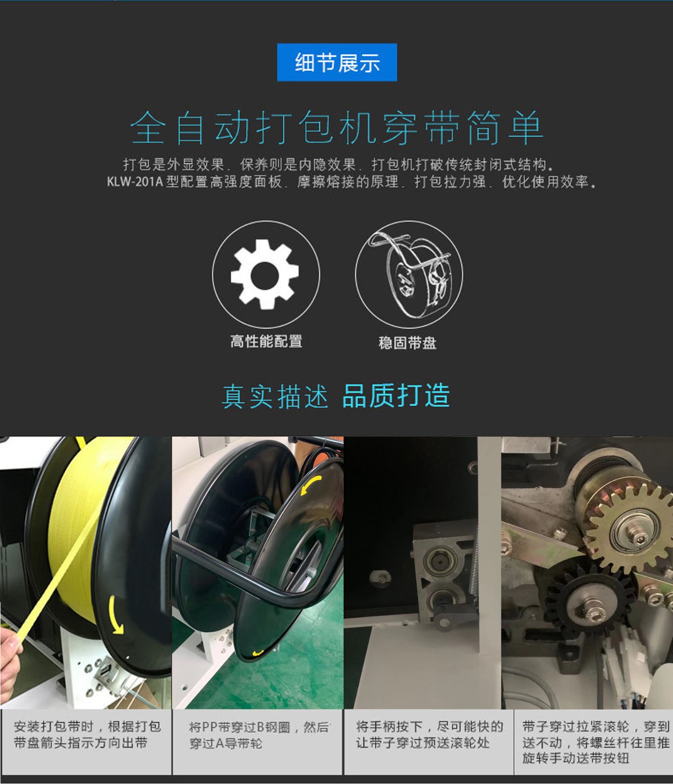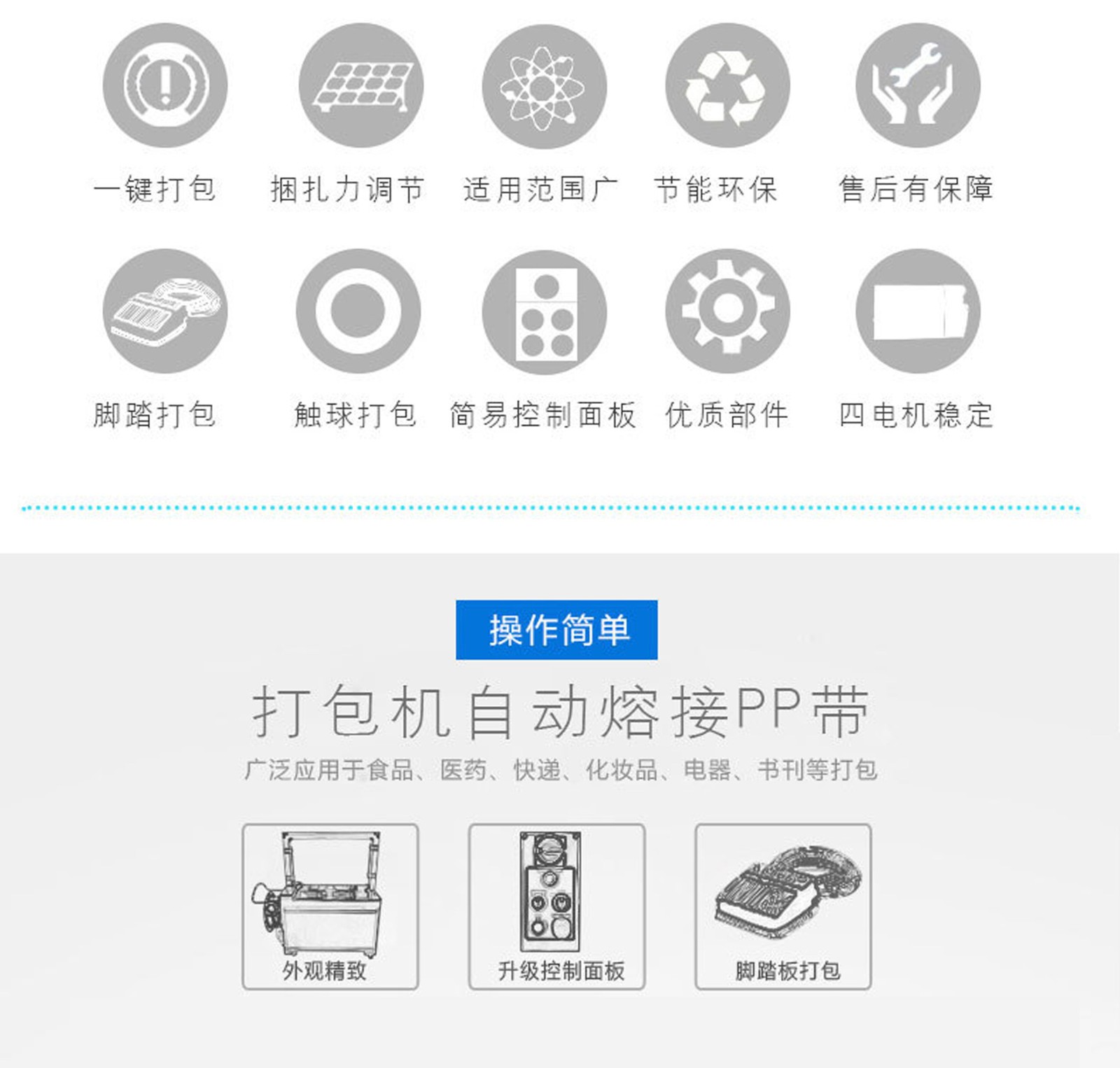 打包機又稱捆包機、打帶機或捆扎機,是使用捆扎帶捆扎產品或包裝件,然后收緊并將兩端通過發熱燙頭熱融粘接方式結合。打包機的功能是加固包裝物品的,使物品在搬運過程中、貯存中不因捆扎不牢而散落,同時還應捆扎整齊美觀。