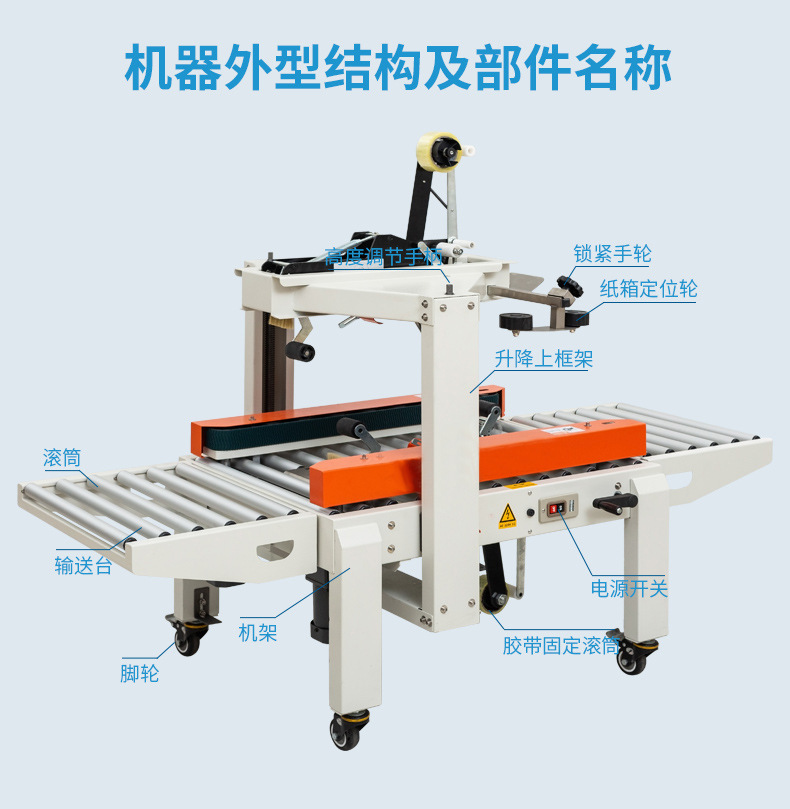 封箱機(jī)主要適用于紙箱的封箱包裝,封箱機(jī)采用膠帶對紙箱封口,經(jīng)濟(jì)快速、容易調(diào)整,可一次完成上、下自動封箱動作,如采用印字膠帶,更可提高產(chǎn)品形象。