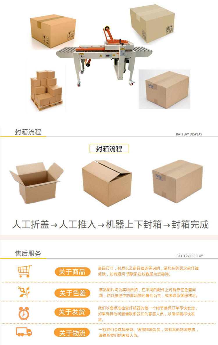 封箱機是一種用于紙箱封箱包裝的設備,主要適用于紙箱的封箱包裝,既可單機作業,也可與流水線配套使用。它可單箱作業,也可與紙箱成型開箱機、裝箱機、貼標機、捆包機、棧板堆疊機、輸送機等設備配套成包裝流水線使用,為包裝流水線作業必須的設備。封箱機的主要分類包括自動拆蓋封箱機系列、氣動調整封箱機系列、自動封箱機系列、邊角式封箱機系列、四角邊封箱機、工字型封箱等,封箱方式可分為上下驅動、左右驅動、側邊、角邊等,一般采用透明膠帶以及牛皮紙材料。