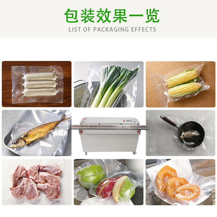 全自動(dòng)連續(xù)拉伸真空包裝機(jī)適用于各種休閑食品的真空(充氣)包裝、肉制品、海產(chǎn)品、果蔬、醬菜、冷卻肉、醫(yī)藥產(chǎn)品、五金元件、醫(yī)療器械等進(jìn)行真空、充氣包裝。