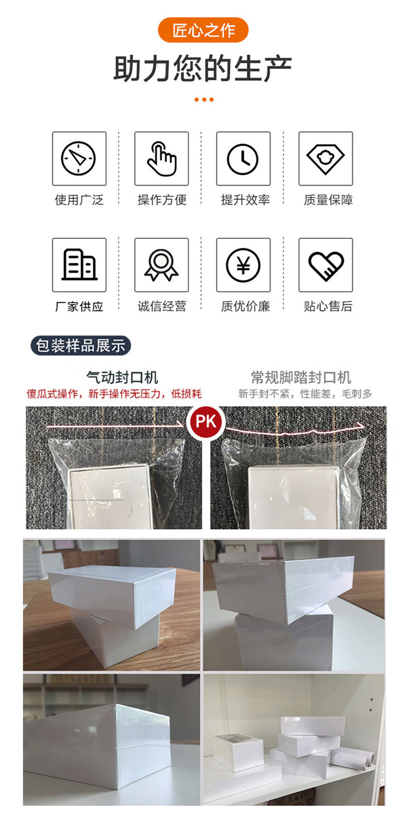 封口機是一種用于封閉包裝材料的機械設備。它主要用于食品、飲料、醫藥、化妝品等行業的包裝過程中,將包裝材料進行封口,確保產品的密封性和保鮮性。封口機的主要作用是將包裝袋、瓶蓋、罐蓋等密封起來,防止產品受到外界環境的污染和氧化。封口機可以根據包裝材料的不同,采用不同的封口方式,如熱封、冷封、超聲波封口等。它可以提高包裝效率,減少人工封口的時間和勞動強度,并確保封口的質量和一致性。封口機廣泛應用于各個行業的包裝生產線,提升了產品的包裝質量和市場競爭力。