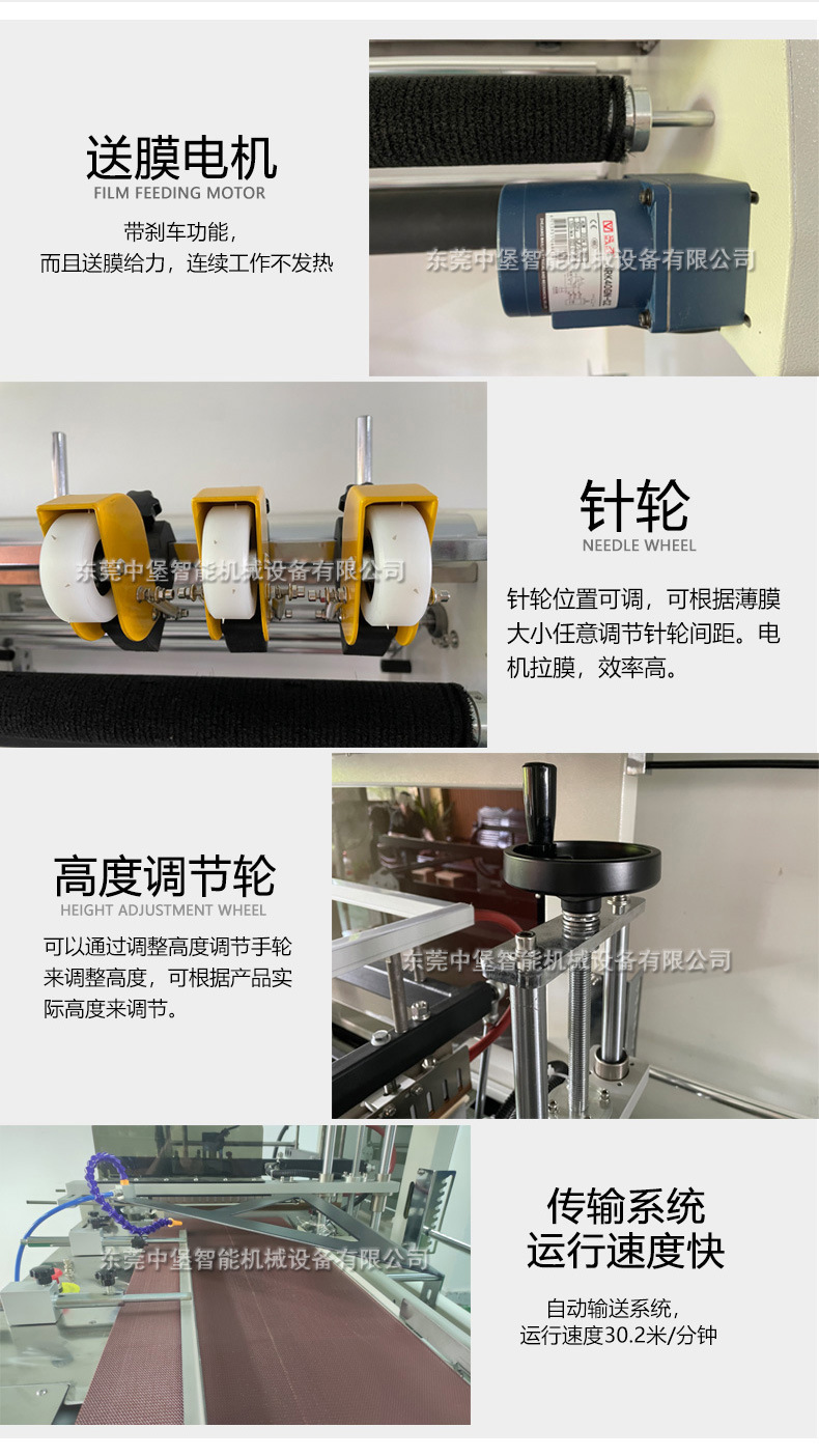 封切機全自動無人化操作的包裝機,廣泛用于批量生產包裝的流水作業,工作效率高,自動送膜打孔,自動套膜封切,自動卷取廢料;只需手動調節導膜系統以及手動調節進料輸送平臺,適用不同寬度及高度的產品。