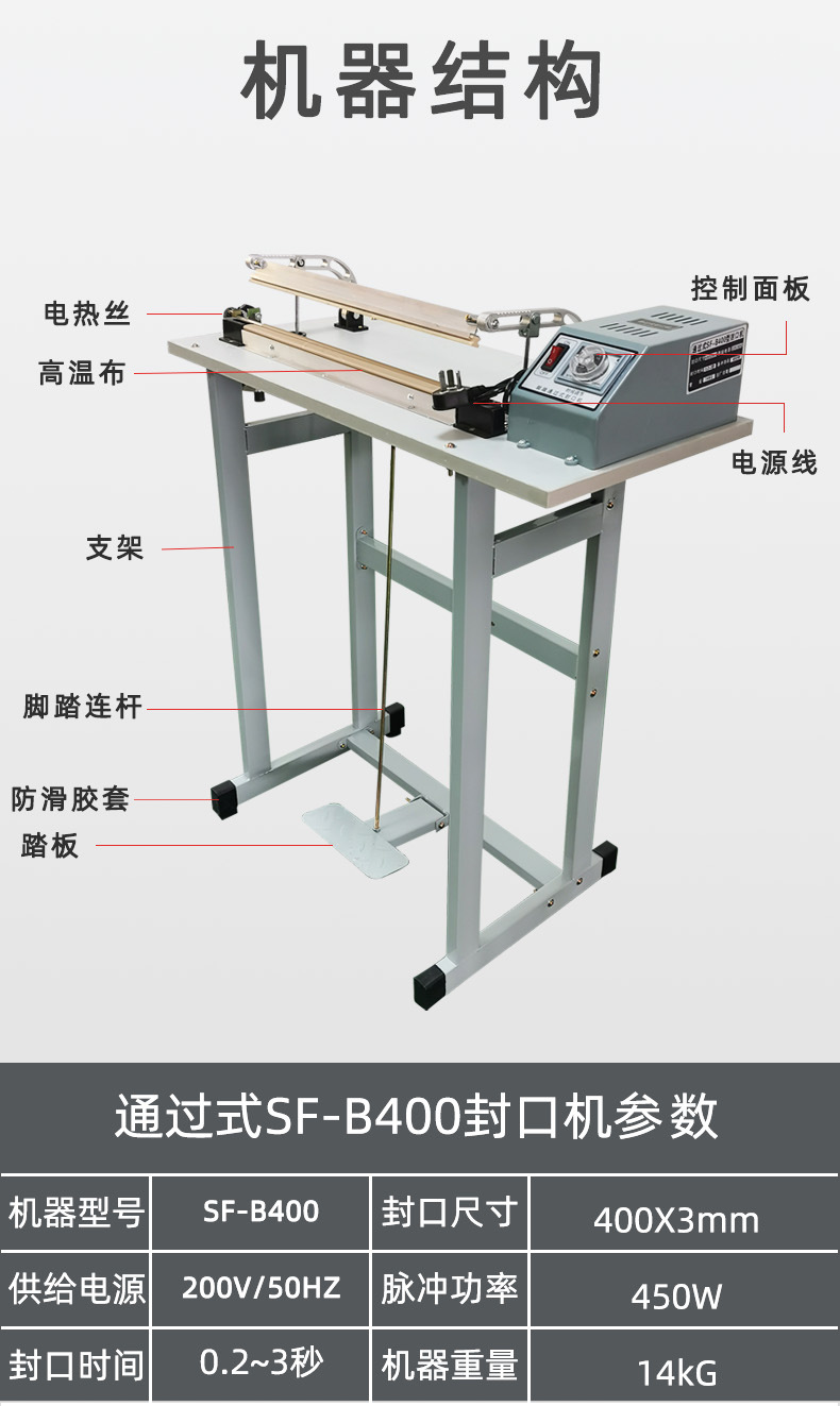 腳踏封口機是根據國內外先進的機型基礎上,重新設計制造而成,適用于所有塑料袋薄膜封口及制袋,是食品廠,化妝品廠,藥廠等單位的理想封口設備。