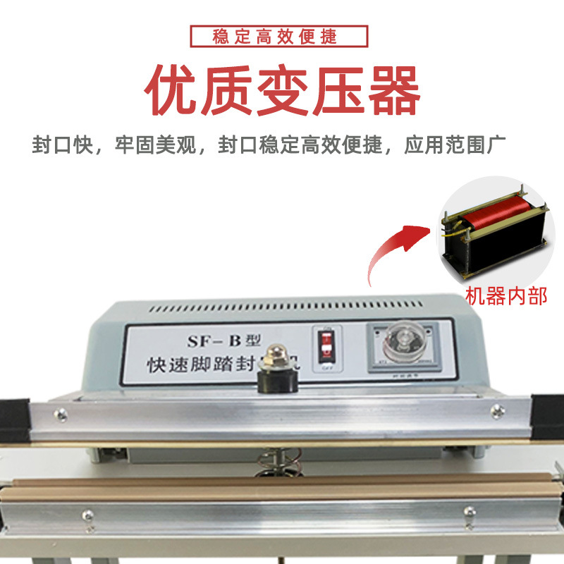 腳踏封口機適用于各種塑料薄膜、?復合薄膜及鋁塑薄膜的封合。?這種封口機因其高效、?簡單操作和廣泛的應用領域,?被廣泛應用于食品、?醫藥、?五金等多個行業。?具體來說,?腳踏封口機的應用特點包括:?