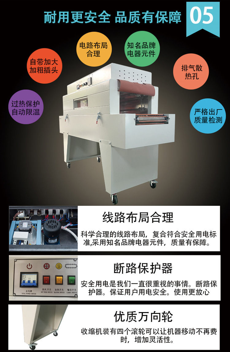 熱收縮包裝機,也稱收縮機、收縮包裝機,是市場比較先進的包裝方法之一。除包含自身的優勢外,此外可減低產品被拆、被竊的可能性;適用于多件物品緊包裝和托盤包裝。 熱收縮機被廣泛應用于玻璃瓶、發泡膠、紙盒、玩具、電子、電器、文具、圖書、唱片、五金工具、日用品、藥品、化妝品、飲料、水果、紀念標簽等物品包裝。 還有就是一種餐具收縮機(餐具包裝機),專門用于餐具的熱收縮,此餐具收縮機設備特別適用于餐飲餐具、軟件、印刷品、餅干、制藥、陶瓷、飲料及地板等行業的大批量熱收縮膜成型包裝。