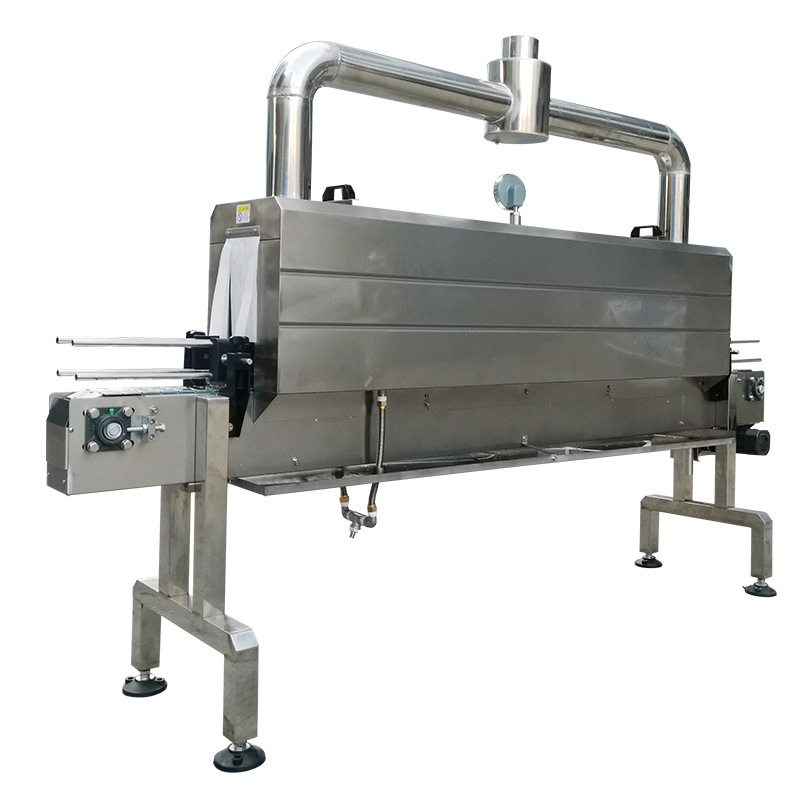 PRODUCT CENTER利用蒸汽獨(dú)有的恒溫而且溫度擴(kuò)散均勻的特性來(lái)工作,以達(dá)到普通電熱紅外加熱收縮機(jī)不可比擬的效果。設(shè)備采用加熱器加熱水而產(chǎn)生蒸汽,不需要另外配備蒸汽鍋爐。主機(jī)有主副2個(gè)加熱器,可以根據(jù)不同的生產(chǎn)速度來(lái)調(diào)節(jié)設(shè)備功率的大小,輸送帶采用無(wú)級(jí)調(diào)速,輸送速度可以任意調(diào)節(jié)。廣泛應(yīng)用于大桶或小瓶裝礦泉水、純凈水;汽水和茶飲料等食品飲料行業(yè),以及化妝品、洗發(fā)水和五金電子等需要收縮膜包裝的場(chǎng)合使用。熱收縮機(jī)采用收縮薄膜包裹在產(chǎn)品或包裝件外面,經(jīng)過(guò)加熱,使收縮薄膜收縮裹緊產(chǎn)品或包裝件,充分顯示物品的外觀,提高產(chǎn)品的展銷(xiāo)性,增加美觀及價(jià)值感